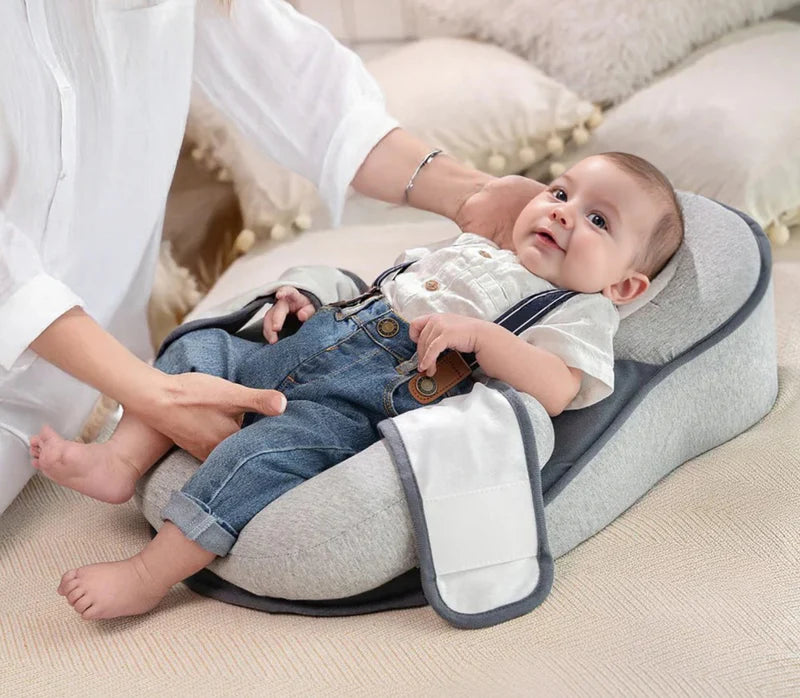 Safety First: Built-in safety straps ensure a secure back-sleeping position — no rolling, no worries, just peace of mind.